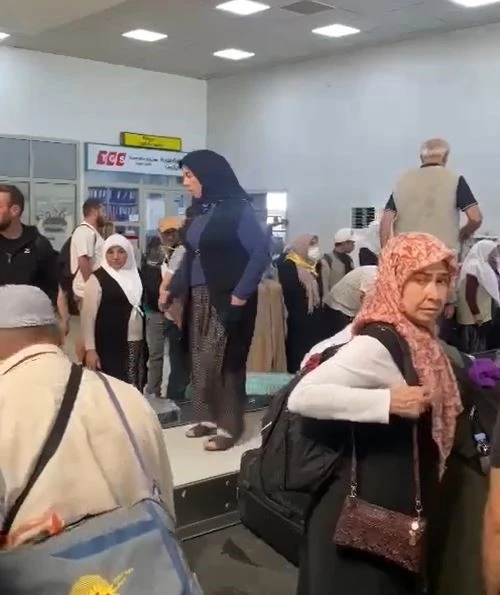 Yoğunluk nedeniyle bagajların taşındığı bant üzerinde de aksama yaşandı. Valizlerin taşındığı bandın bir süreliğine durması üzerine bagajlarını teslim almak üzerine bandın etrafında bekleyen hacılar valizlerini bulmak için yoğun uğraş verdi. Bandın üzerine çıkan hacıların bagajlarını aradığı görüntüler ise cep telefonu kamerasıyla kaydedildi.