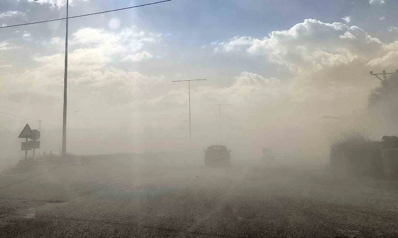 Rüzgarın etkisi ile oluşan toz bulutu nedeniyle görüş mesafesi düşerken, sürücüler yol almakta güçlük çekti.