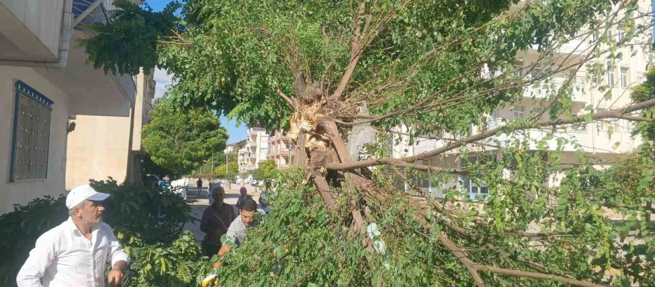 Gölbaşı ilçesindeki kuvvetli rüzgar nedeniyle bazı ağaçlar ortadan kırılırken, cadde ve sokaklara devrilen dallar ulaşımı zorlaştırdı.