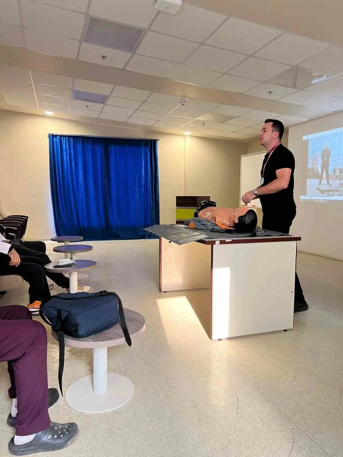 Aydın Adnan Menderes Üniversitesi (ADÜ) Hastanesi’nde sağlık çalışanlarının acil durumlarda daha etkin müdahale edebilmesi amacıyla Temel Yaşam Desteği Eğitimi düzenlendi. Sağlık çalışanlarının bilgi ve becerilerini geliştirmeye yönelik olarak düzenlenen ve Acil Tıp Anabilim Dalı Dr. Öğr. Üyesi Ahmet Melih Savaş tarafından verilen eğitimde, kalp durması, solunum yetmezliği ve ani bilinç kaybı gibi acil durumlarda uygulanması gereken temel yaşam desteği adımları hem teorik hem de uygulamalı olarak anlatıldı. Katılımcılar, eğitim boyunca mankenler üzerinde uygulamalı pratik yaparak bilgilerini pekiştirdi. Eğitime yoğun ilgi gösteren sağlık çalışanları, hayat kurtarma zincirinin ilk halkasını oluşturan bu eğitimin büyük önem taşıdığını belirtti. ADÜ Hastanesi yetkilileri de, bu tür eğitimlerin düzenli aralıklarla devam edeceğini ifade etti.