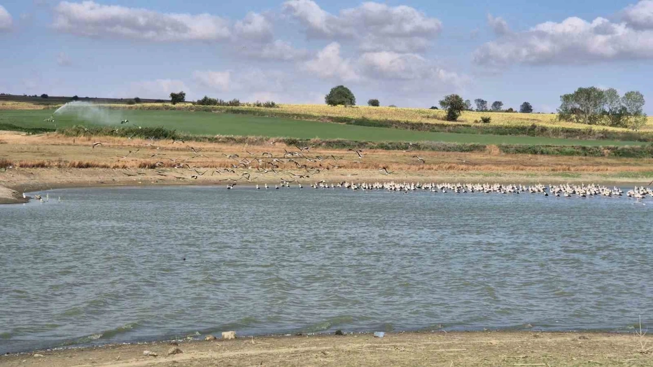 Afrika’ya doğru uzun yolculuklarına hazırlanan leylekler, gölet çevresinde hem dinlenip hem de beslendi. Sıcak yaz günlerinde serin suyun kenarında bir araya gelen leylekler, sabahın erken saatlerinden itibaren sürüler halinde gölete iniş yaptı. Ardından gökyüzüne yükselen binlerce leyleğin oluşturduğu görüntü, doğanın muhteşem göç tablosunu gözler önüne serdi.