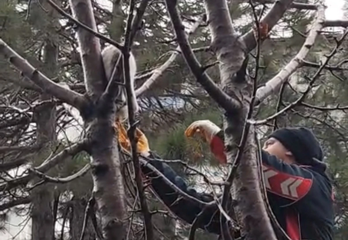 Bitlis’in Tatvan ilçesinde ağacın tepesinde mahsur kalan kedi, çevredekilerin ihbarı üzerine olay yerine gelen itfaiye ekipleri tarafından kurtarıldı.
