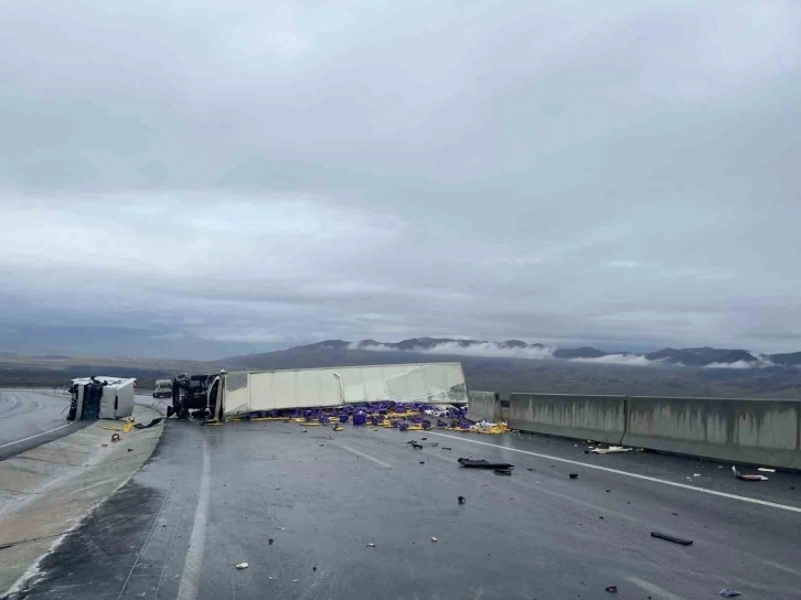 Ağrı’nın Doğubayazıt ilçesi ile Van’ın Çaldıran ilçesi arasında meydana gelen trafik kazasında devrilen limon yüklü tır sürücüsü yaralandı.