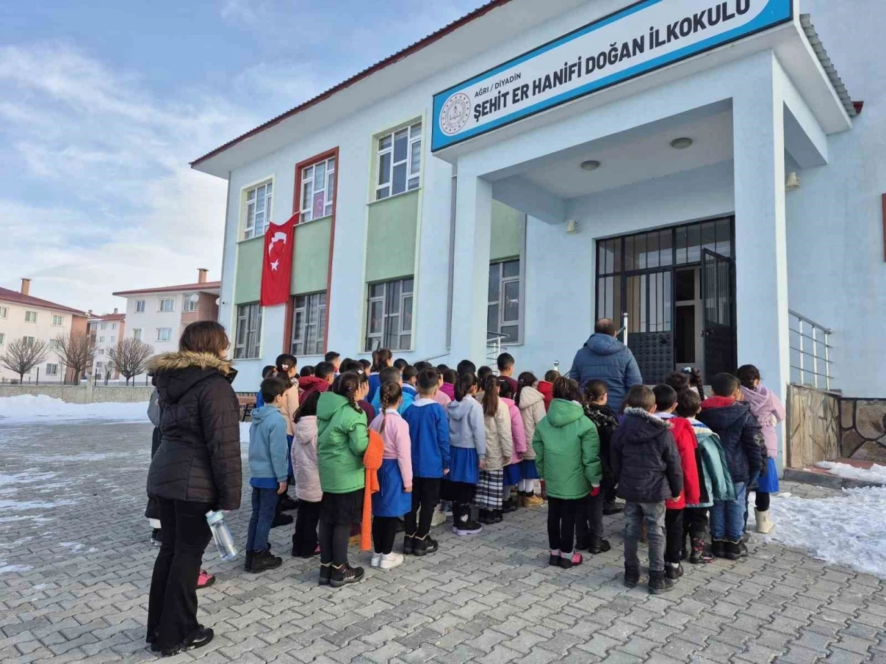 Kahramanmaraş merkezli 6 Şubat depremlerinin üçüncü yılı dolayısıyla Ağrı İl Millî Eğitim Müdürlüğü koordinesinde il genelindeki ilkokul, ortaokul ve liselerde ilk ders öncesinde bir dakikalık saygı duruşunda bulunuldu.