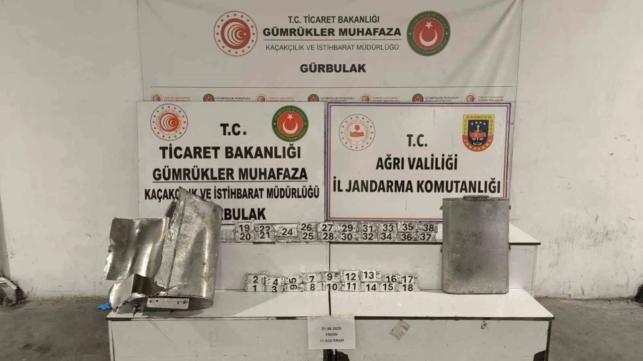 Gürbulak Gümrük Sahası’nda gerçekleştirilen operasyonda, tırın yakıt deposuna gizlenen 11 kilo 633 gram eroin jandarma ve gümrük ekiplerince ele geçirildi.