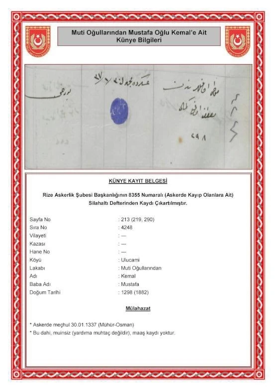AK Parti Gençlik Kolları Başkanı Yusuf İbiş, CHP Genel Başkanı Özgür Özel’in Cumhurbaşkanı Recep Tayyip Erdoğan’a yönelik ’Senin deden neredeydi’ sözlerine cevap verdi. İbiş, Milli Savunma Bakanlığı arşivinde yer alan belgeyi sosyal medya hesabından paylaşarak, "Cumhurbaşkanımıza, dedesinin bir asır önce nerede olduğunu sormuşsun? İşte cevabı; Rabbim; bin yıldır vatanımız, bayrağımız ve bağımsızlığımız uğrunda bir gül bahçesine girercesine kara toprağın bağrına giren tüm şehitlerimizin ruhlarını şad, mekanlarını cennet eylesin" dedi.