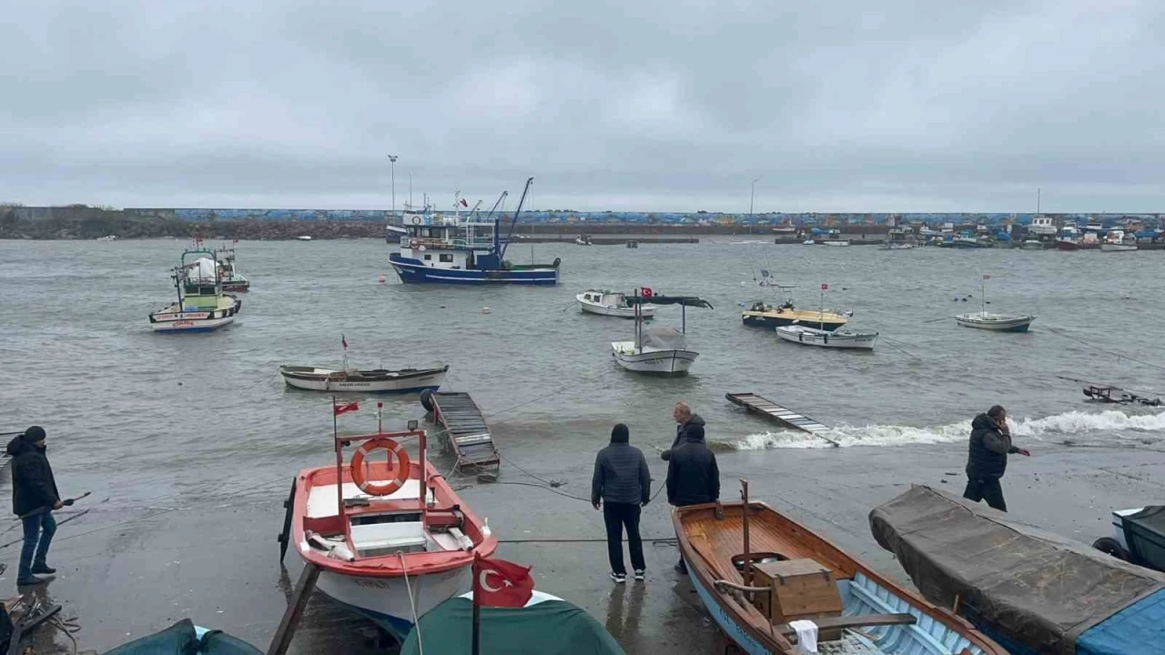 Olumsuz hava şartları sebebiyle denize açılamayan balıkçılar, teknelerini barınağa çekerek önlem aldı.