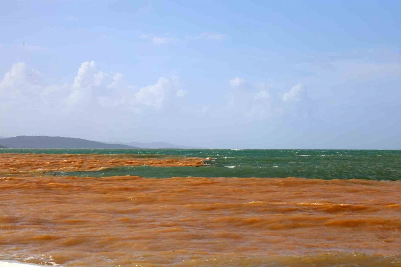 Muğla’da etkili olan sağanak yağış ve fırtına sonrası, ’Sakin Kent’ ünvanına sahip dünyaca ünlü Ula’nın Akyaka Mahallesi’nde denizin rengi kahverengiye döndü.