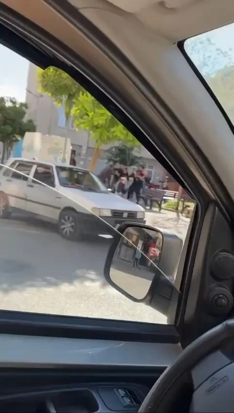 Olay, merkez Osmangazi ilçesi Fatih Mahallesi’nde meydana geldi. Edinilen bilgiye göre, aralarında daha önceden alacak-verecek meselesi yüzünden husumet bulunan 2 kişi yol üzerinde karşılaştı. Tartışma kısa sürede büyürken taraflar yanlarında çocuklarının olmasına aldırmadan kavgaya tutuştu. Kavga anı çevredekilerin araya girmesiyle son buldu. O anlar cep telefonu kamerasına yansıdı.