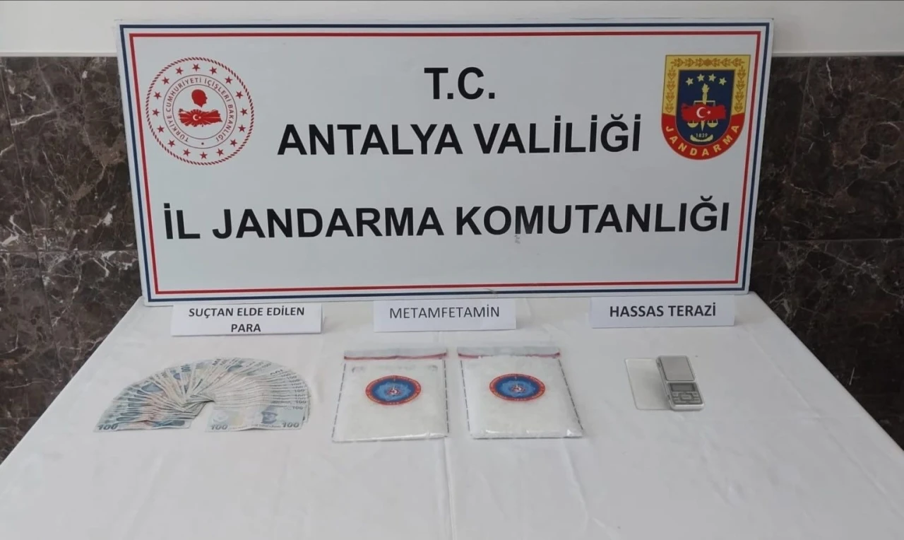 Antalya İl Jandarma Komutanlığı koordinesinde, Alanya Cumhuriyet Başsavcılığı talimatları doğrultusunda, Antalya İl Jandarma Komutanlığı Narkotik Şube Müdürlüğü ve Alanya İlçe Jandarma Komutanlığı ekiplerince müşterek operasyon gerçekleştirildi. Yapılan aramalarda 1. kilo 650 gram metamfetamin ile 1 adet hassas terazi ele geçirildi. Uyuşturucu maddeye ve diğer delillere el konulurken, olayla ilgili adli tahkikat başlatıldı.