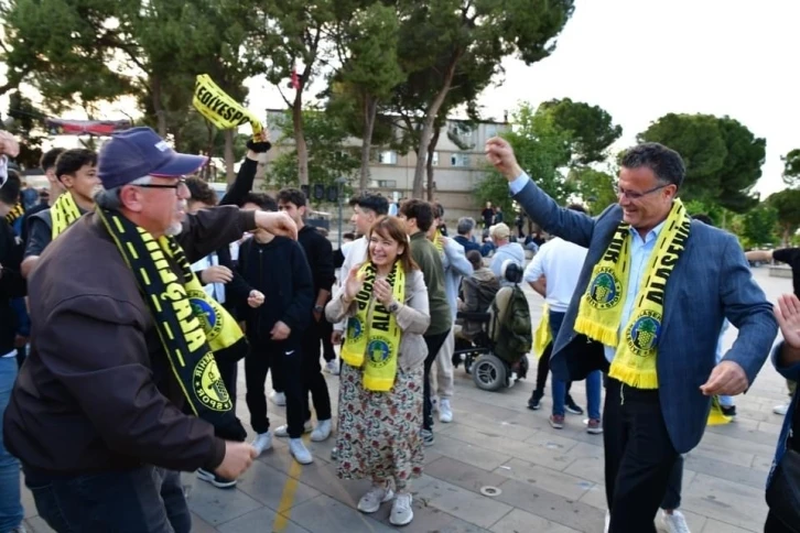 Alaşehir Belediyespor’un galibiyetini öğrenen taraftarlar Cumhuriyet ve Demokrasi Meydanında toplanarak şampiyonluğu kutladı. Eşi Selen Öküzcüoğlu ile birlikte kutlamalara katılan Belediye Başkanı Ahmet Öküzcüoğlu taraftarlara seslenerek, "Tüm sosyal aktivitelere destek verdiğimiz gibi spora da destek vereceğiz." dedi.