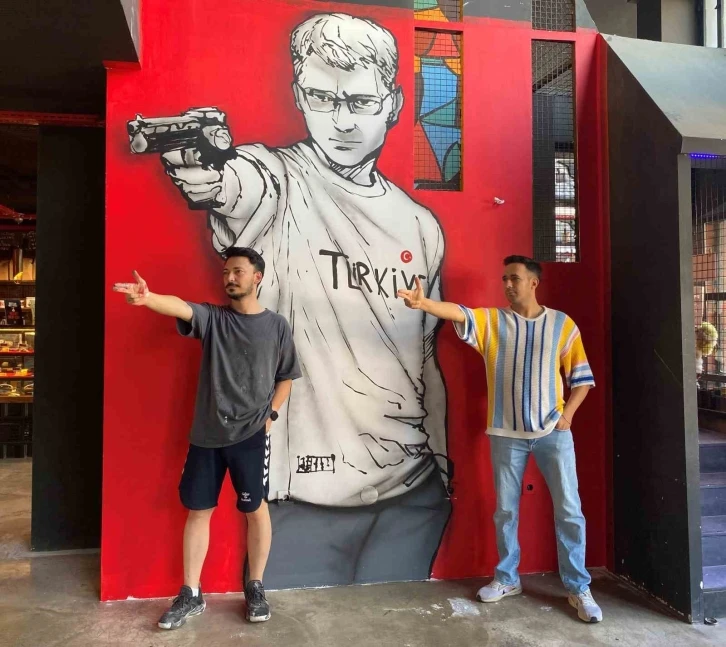 Paris 2024 Olimpiyat Oyunları’nda takım arkadaşı Şevval İlayda Tarhan’la Türkiye’ye 10 metre havalı tabanca karışık takım mücadelesinde gümüş madalya kazandıran ve atış tarzıyla fenomen olan Yusuf Dikeç’in hayranı olan Alaşehirli bir iş yeri sahibi, iş yerinin duvarına Yusuf Dikeç’in resmini yaptırttı. Yusuf Dikeç’in fotoğrafını gören hayranları ise resminin önünde aynı pozu vererek hatıra fotoğrafı çektiriyor.