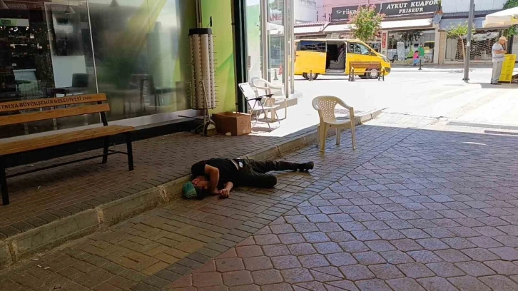 Manavgat’ta kaldırımda otururken bir anda yere yığılan şahsın uyuşturucu bağımlısı olduğu, aldığı uyuşturucu ve aşırı sıcaktan dolayı sızıp kaldığı belirlendi. Gencin banktan kalkıp yere oturması ve titremeye başlayıp yattığı anlar güvenlik kamerası tarafından görüntülendi.