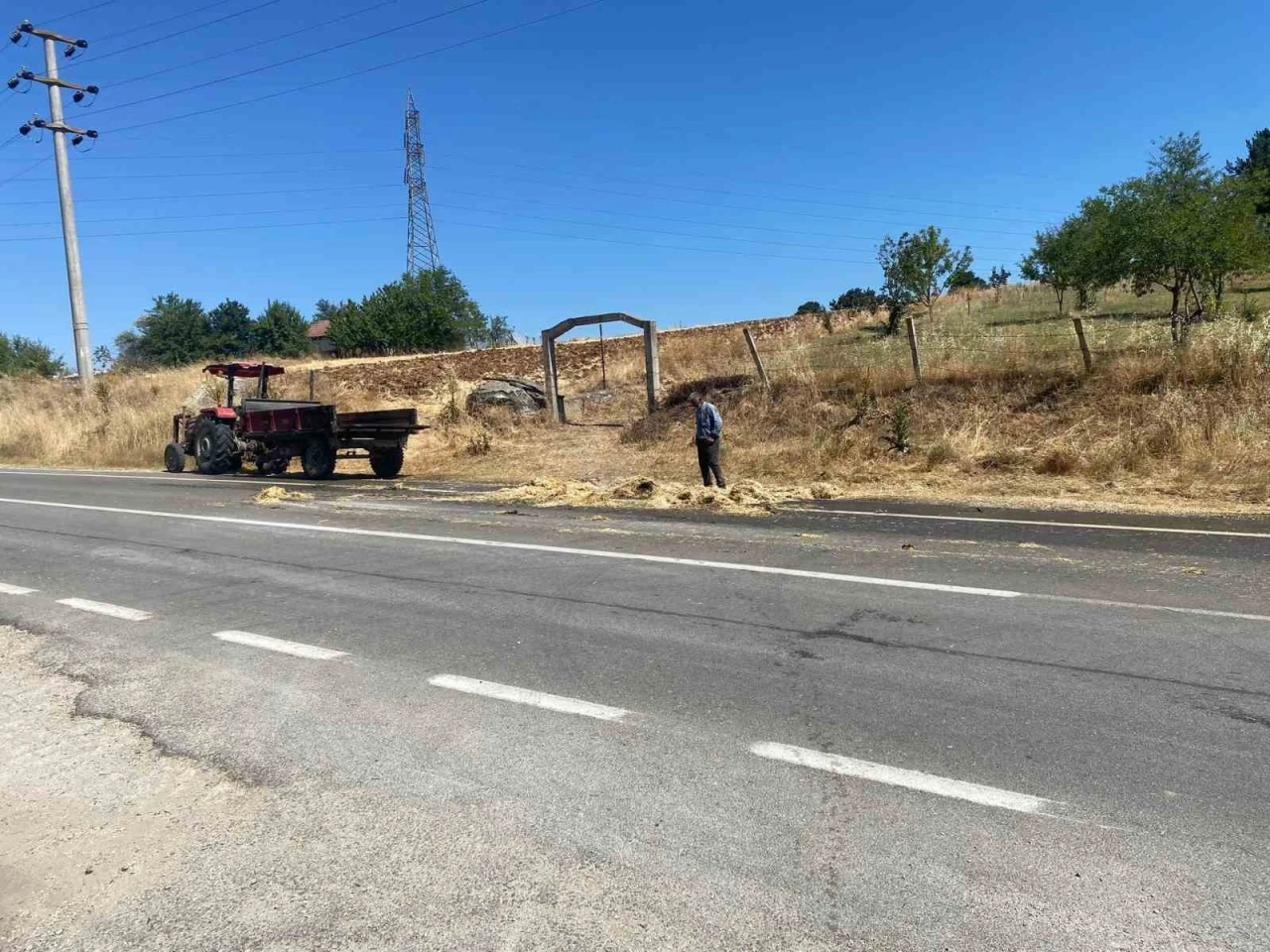 Bilecik’in Pazaryeri ilçesinde tarladan toplanan saman balyalarını taşıyan Adem K. idaresindeki traktörün römorkunda henüz belirlenemeyen bir nedenle yangın çıktı. Alevler kısa sürede saman balyalarını sardı, ortalık bir anda dumanla kaplandı. Yangını fark eden çevredeki vatandaşlar, ilk müdahaleyi yaparak alevlerin büyümesini engellemeye çalıştı. Olay yerine hızla Pazaryeri Belediyesine bağlı itfaiye ekipleri ile polis ekipleri sevk edildi. Kısa sürede olay yerine ulaşan itfaiye, yangını çevreye sıçramadan kontrol altına alarak söndürdü.