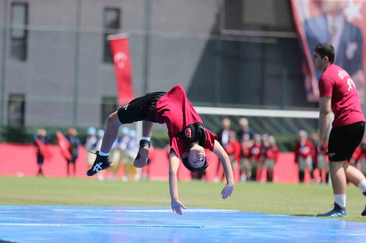 Aliağa İlçe Gençlik ve Spor Müdürü Özlem Günay Karataş’ın konuşmasının ardından, Gençlik ve Spor İlçe Müdürlüğü tarafından düzenlenen gençlik koşusunda dereceye giren öğrenciler için ödül töreni düzenlendi. Türkiye Odalar ve Borsalar Birliği ALOSBİ Mesleki ve Teknik Anadolu Lisesi öğrencilerin sunumuyla Gençliğe Hitabe ve Gençliğin Ata’ya Cevabı okundu. Türkiye Odalar ve Borsalar Birliği ALOSBİ Mesleki ve Teknik Anadolu Lisesi öğrencileri ‘Erik Dalı’ eşliğinde dans etti. Ardından Aliağa Belediyesi karate ve güreş takımları gösterilerini yaptı. Spor gösterileri Alcim cimnastik ekibinin gösterisi ile devam etti. Sonrasında sahne alan Aliağa Belediyesi Halk Oyunları ekibinin gösterisi izleyenlerin beğenisini topladı. Kutlama programı Türkiye Odalar ve Borsalar Birliği ALOSBİ Mesleki ve Teknik Anadolu Lisesi öğrencilerinin hazırladığı ‘Bandırma Vapuru’ final gösterisi ile sona erdi.