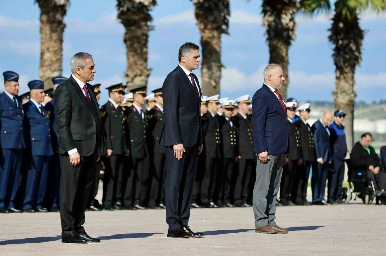 Gerçekleştirilen resmi törende Aliağa Kaymakamlığı, Garnizon Komutanlığı, Belediye Başkanlığı ile Gaziler Derneği Atatürk Anıtına çelenk sundu. Çelenk sunumu sonrası saygı duruşunda bulunularak İstiklal Marşı okundu. Gazi Beyhan Kamburoğlu: "Çanakkale, maneviyatın maddiyatı yendiği savaştır"