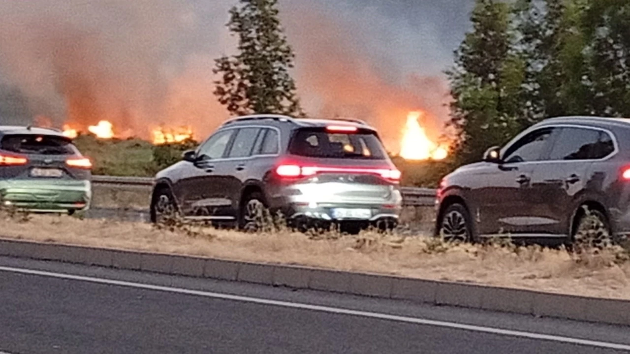 Yetkililer, güvenlik gerekçesiyle Çandarlı mevkiinden itibaren trafik akışını otoyola yönlendirdi. Ekiplerin yangını kontrol altına almak için karadan ve havadan müdahalesi sürüyor.
