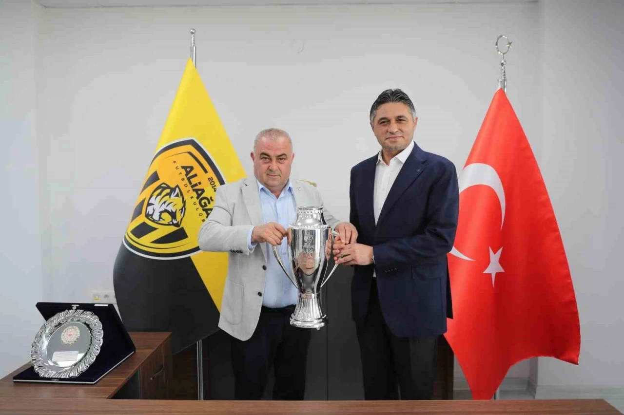 Aliağaspor FK’nın Ağapark’ta bulunan A Takım Tesisleri’nde gerçekleştirilen kupa teslim programında Aliağa Belediye Başkanı Serkan Acar, Türkiye Futbol Federasyonu (TFF) 2. ve 3. Lig Kulüplerinden Sorumlu Yönetim Kurulu Üyesi Murat Şahin, TFF Ege Bölge Müdürü Sevgi Özdemir, TFF İzmir İl Temsilcisi Selçuk Ergeldi, Aliağaspor FK Başkanı Turgay Mete, Aliağaspor FK Teknik Sorumlusu Polat Çetin ile takım kaptanları Mehmet Fuat Gölbaşı, Oktay Kancı ve Berke Bıyık yer aldı.
