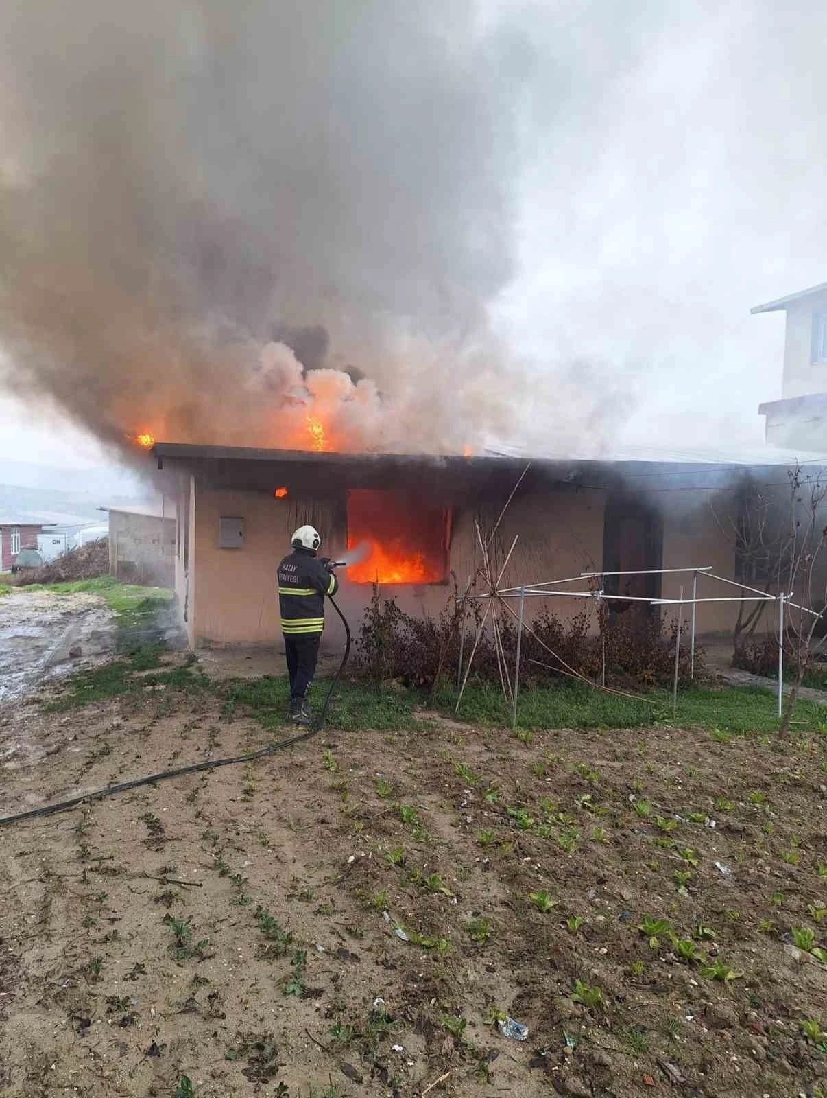 Hatay’da alevlere teslim olan müstakil ev kullanılmaz hale geldi.