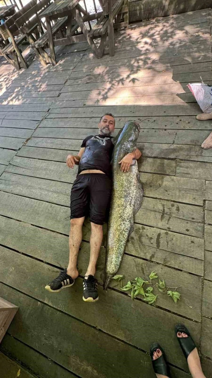 Düzce’de Melen Çayı’nda amatör bir balıkçının ağına 1 metre 70 santim uzunluğunda ve 52 kilo ağırlığında yayın balığı takıldı.