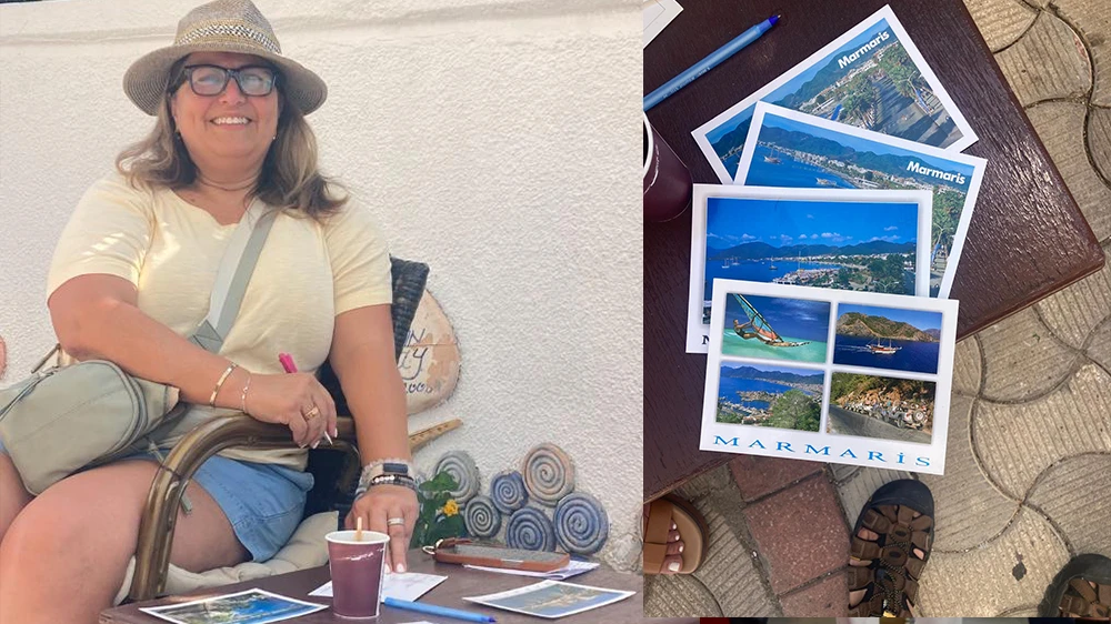 26 Ağustos 2025 tarihinde Marmaris Limanı'na yanaşan lüks yolcu gemisi Azamara Cruise'un Amerikalı yolcusu Gloria Keanan, bu güzel sahil kasabasına olan sevgisini sıra dışı bir yolla ifade etti. Gloria, tatilini tamamlayıp limandan ayrılmadan önce, torunlarına ayrı ayrı göndermek üzere Marmaris'in kartpostallarını postaya verdi.