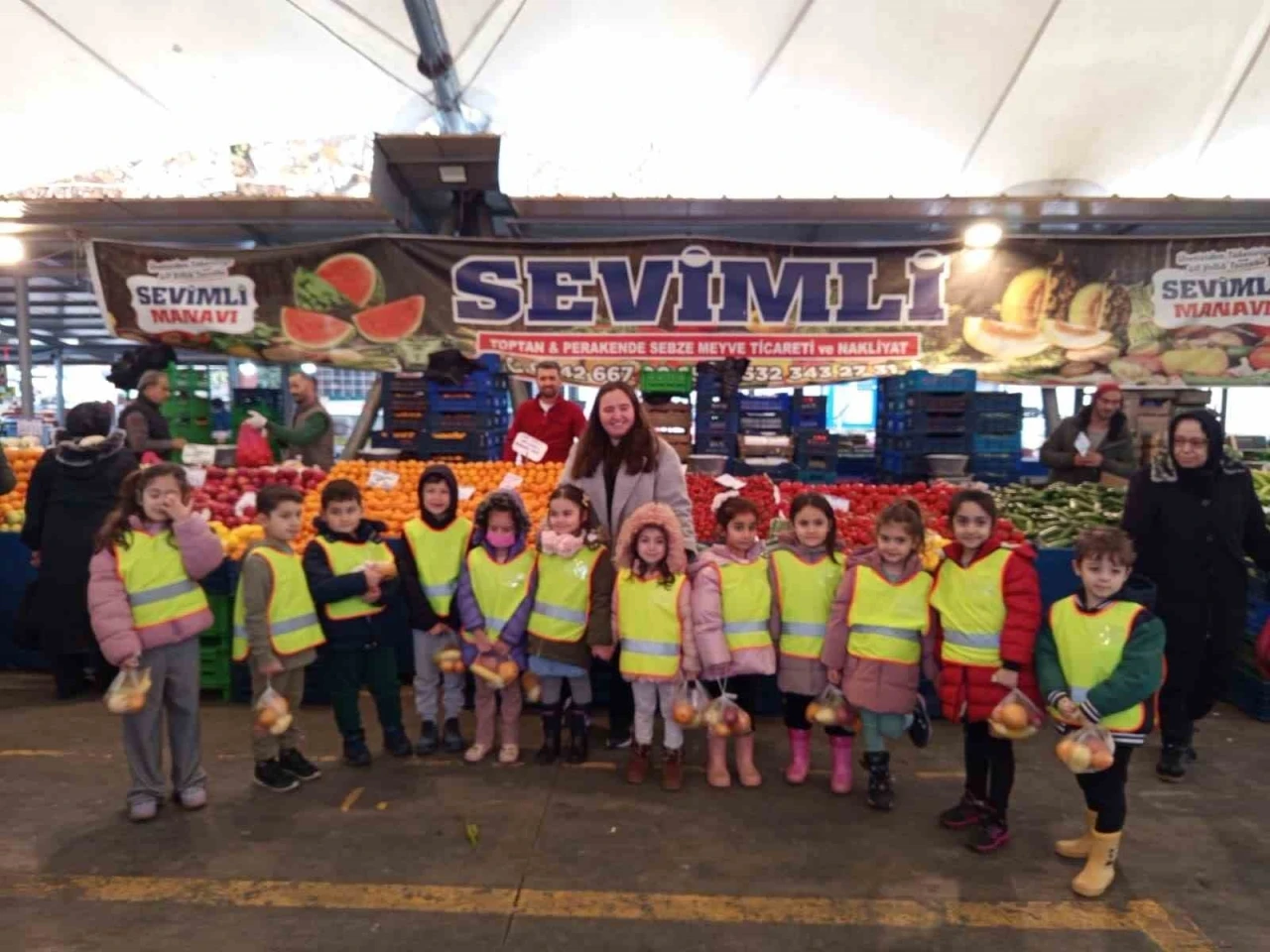 Okul Müdürü Mevlüt Torlakcık ve öğretmenleri eşliğinde pazarı gezen öğrenciler, pazarcı esnafı tarafından ilgiyle karşılandı. Minikler, yerli üretimin desteklenmesi gerektiğini vurgulayan el broşürlerini hem vatandaşlara hem de esnafa dağıtarak farkındalık oluşturdu. Etkinlik kapsamında pazar tezgâhlarını gezen öğrenciler, yerli ürünlerin tercih edilmesi gerektiğini öğrenirken aynı zamanda küçük çaplı alışverişler yaparak eğlenceli bir gün geçirdi.