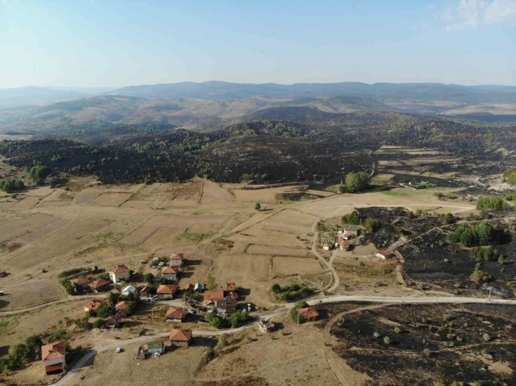 Ankara’nın Kızılcahamam ilçesine bağlı kırsal Şahinler Mahallesi yakınlarında dün saat 12.30’da çıkan yangın, Bolu’nun Gerede ilçesindeki ormanlık alana sıçradı. Alevlerin etkilediği Kovacık ve Demirler mahallelerindeki 123 kişi tedbir amaçlı evlerinden tahliye edilirken, gece saatlerinde kuvvetli rüzgar nedeniyle ormanlık alan sabah saatlerine kadar yanmaya devam etti. Sabahın ilk ışıklarıyla birlikte ortaya çıkan manzara yangının etkisini gözler önüne serdi. Yangının etkisiyle kül olan Demirler köyü çevresindeki ormanlık alan ve Berçin Çatak Yaylası dron ile havadan görüntülendi.
