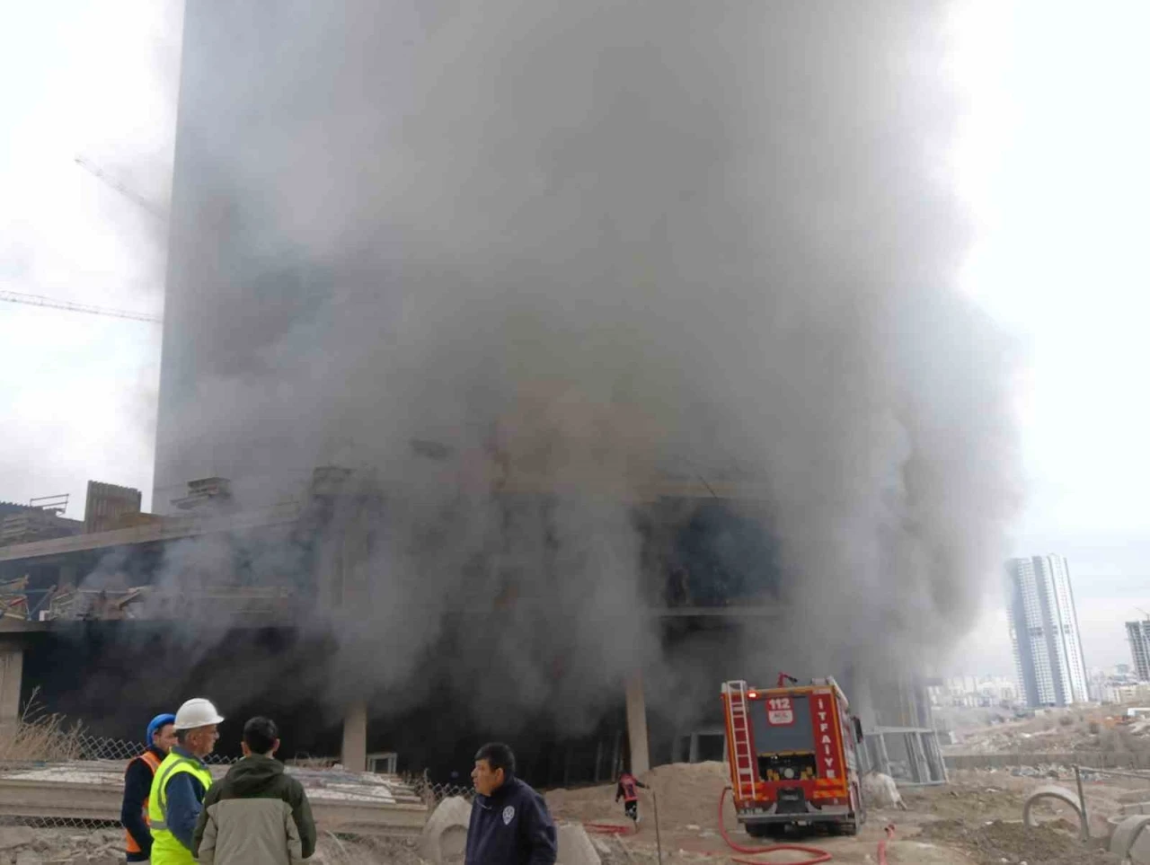 Çankaya ilçesinde inşaat alanında henüz bilinmeyen sebepten bir yangın çıktı. İhbar üzerine bölgeye sevk edilen çok sayıda itfaiye ekibi yangına müdahale ediyor.