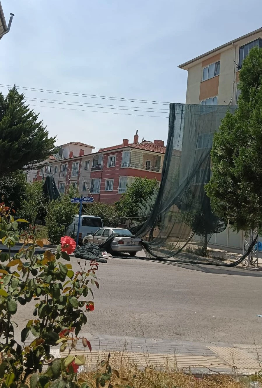 Sincan ilçesi Yenikent semtinde aniden başlayan şiddetli rüzgar sera örtülerini uçurdu. Rüzgarın etkisini kaybetmesiyle uçuşan örtüler elektrik tellerine takılırken, yaşananlar kameralara da yansıdı.