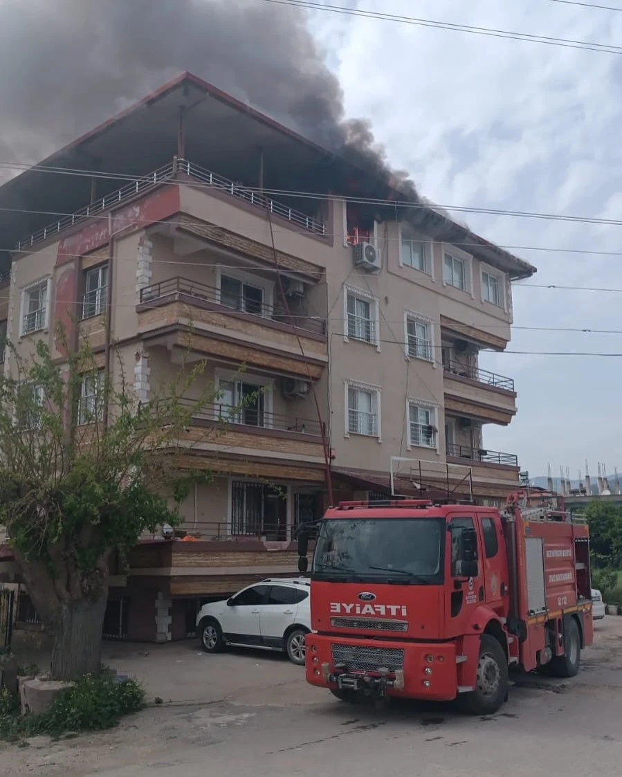 Hatay’da bir binanın en üst katında çıkan yangın itfaiye ekipleri tarafından söndürüldü.