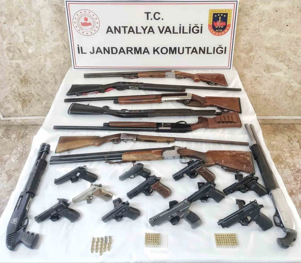 Korkuteli Jandarma Komutanlığı ekipleri, ilçede ruhsatsız silah ve mühimmat taşıyan ve bulunduran şüphelilere yönelik Antalya Cumhuriyet Başsavcılığı talimatıyla operasyon düzenledi. Operasyonda; 10 ruhsatsız tabanca, 14 av tüfeği, 20 tabanca fişeği, 145 kurusıkı tabanca fişeği, 90 av tüfeği fişeği ve 11 tabanca şarjörü ele geçirildi. Olayla ilgili 10 şüpheli hakkında adli ve idari soruşturma başlatıldı.