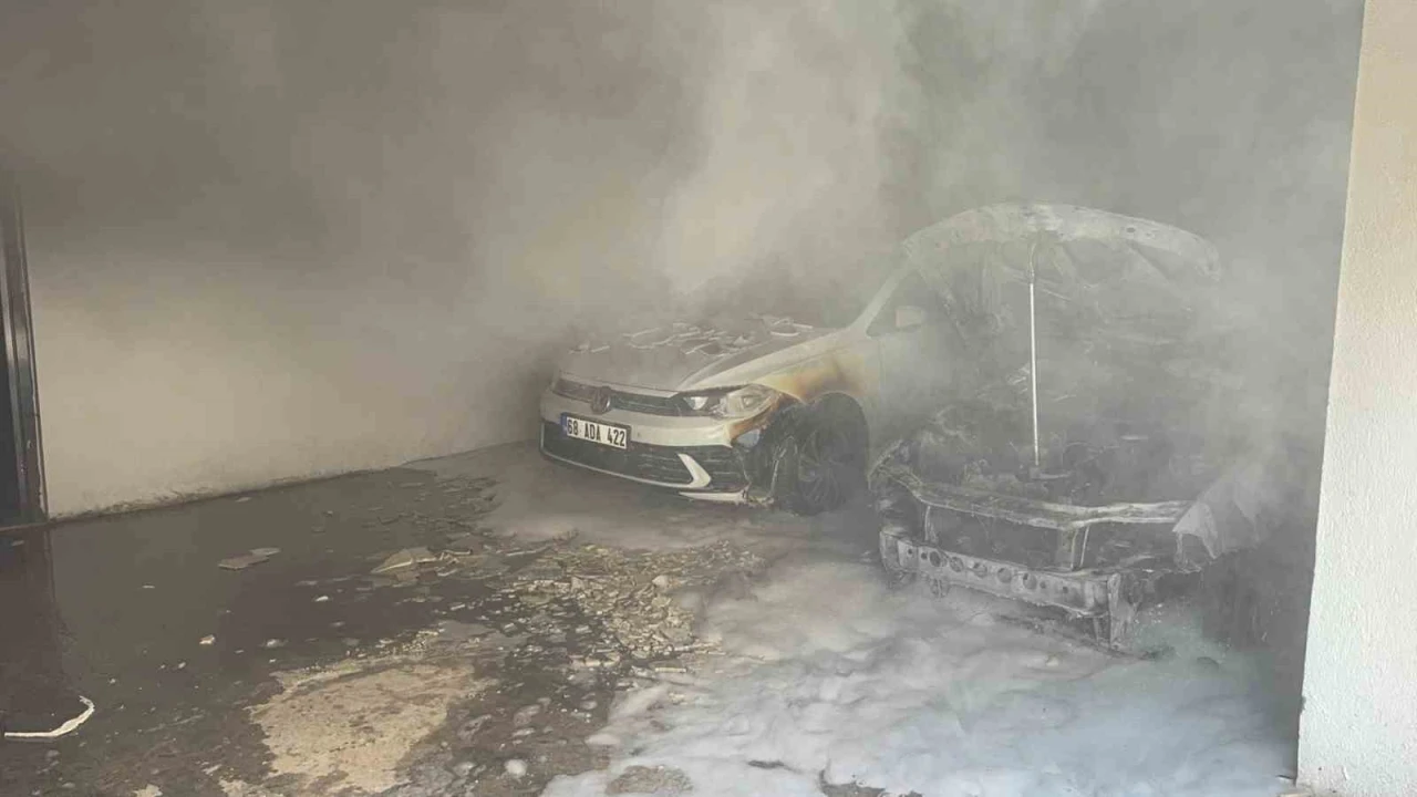 Aksaray’da bir apartmanın garajında park halindeki otomobil bir anda alev alırken yangın ikinci araca sıçramasıyla araçlar zarar gördü.