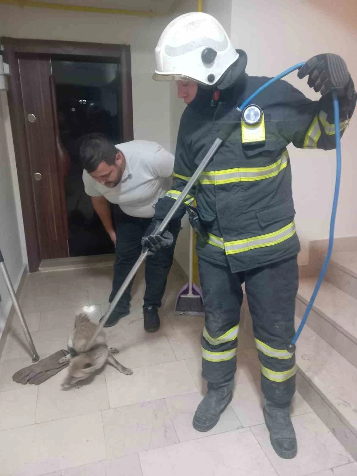 Merkez Ertuğrul Gazi Mahallesi Şehit Tahsin Büyük Çoban Caddesi üzerindeki bir apartmanda yaşayanlar güne sürprizle uyandı. Sabah kalktıklarında kapıların önündeki bazı ayakkabıların parçalandığı görüp şaşıran sakinler güvenlik kameralarını mercek altına aldı. Görüntülerde bina içinde bir tilkinin olduğunu gördüler. Haber verilmesi üzerine adrese itfaiye ekipleri yönlendirildi. İnceleme yapan ekipler tilkinin asansör boşluğunda olduğunu tespit etti. Hummalı çalışma sonucu apart sayesinde tilkiyi yakaladılar. Ekipleri tilkiyi doğaya salarken, apartman sakinleri itfaiye ekiplerine teşekkür etti.
