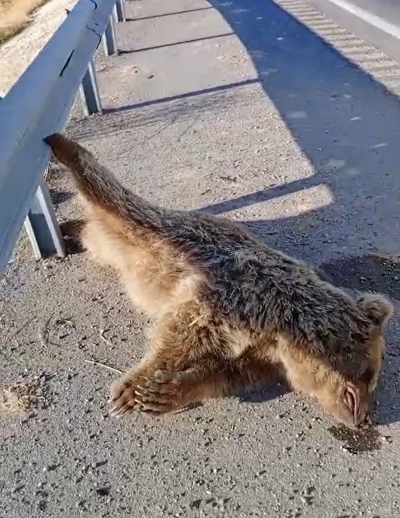 VAN (İHA) – Van’da kara yoluna çıkarken araç çarpan ayı telef oldu.