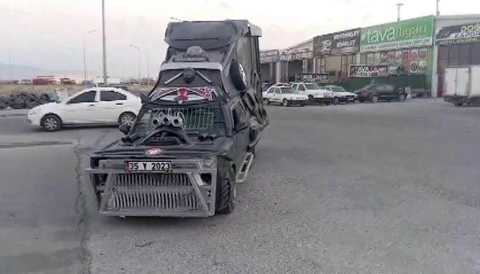 Aksaray’da Tofaş Kartal marka aracına ekstra 4 teker ekleyip 8 tekerli yapan ve şasesine ekleme yapıp hem enine hem de boyuna uzatıp önüne yaptığı demir korumayla aracı adeta tanka çeviren sürücü, polis ekiplerince trafikte yakalandı. Araç trafikten men edilerek otoparka çektirilirken, askeri kamuflaj ve bordo bereyle yakalanan sürücünün ehliyetine el konularak sağlık kuruluna sevk edildi.