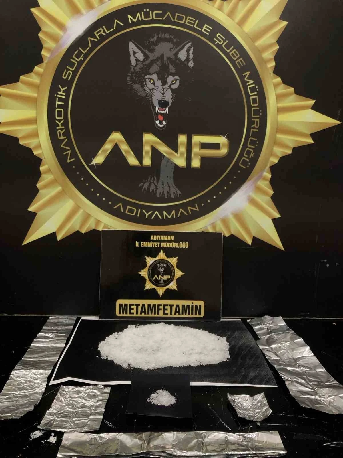 Edinilen bilgilere göre, Adıyaman Narkotik Suçlarla Mücadele Şube Müdürlüğü ekiplerince yapılan çalışmalarda A.Y. ile İ.G. isimli şahısların içerisinde bulunduğu otomobil durdurularak arandı. Narkotik köpeği Cadı ile yapılan aramada otomobilin motor kısmına gizlenmiş 24.54 gram metamfetamin maddesi ele geçirildi. Uyuşturucu maddesi muhafaza altına alınırken otomobildeki 2 kişi gözaltına alındı. Şüpheliler, emniyetteki işlemleri sonrası sevk edildikleri mahkemece tutuklandı.
