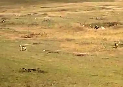 Ardahan-Şavşat kara yolunun Değirmenli köyü arazisine kurt indi. Bu sırada yoldan araçla geçen sürücü, kurtları fark etti. Sürücü, yol kenarındaki arazide bekleyen iki kurdu telefonu ile görüntüledi.
