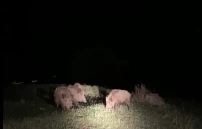 Ardahan merkeze bağlı Ölçek köyünde gece ekili tarlasına giden Cahit Çeliktürk, domuz sürüsüyle karşılaştı. Çeliktürk, yavrularıyla birlikte ekili tarlasına dadanan domuz sürüsünü cep telefonu kamerasıyla anbean kaydetti. Çekilen görüntülerde bir süre ekili alanlarda gezinen ve beslenen domuz sürüsü, bir süre sonra gecenin karanlığında gözden kayboldu.