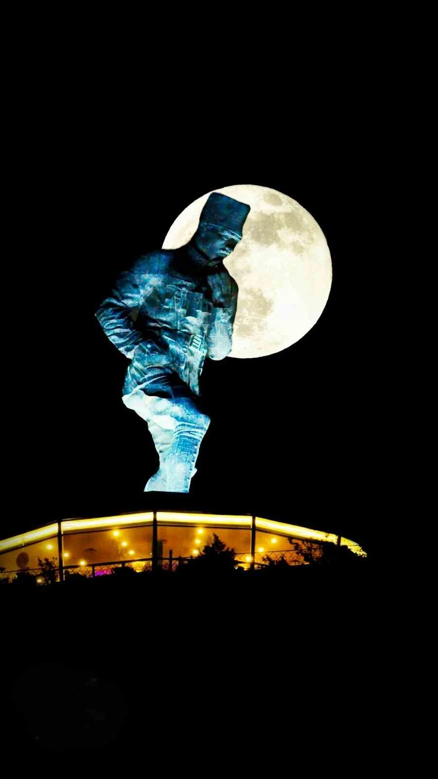 Artvin’in merkezinde Atatepe mevkiinde yer alan ve 22 metre yüksekliğiyle Türkiye’nin en büyük Atatürk heykeli olma özelliğini taşıyan anıt, dolunayla birlikte görsel şölen sundu.