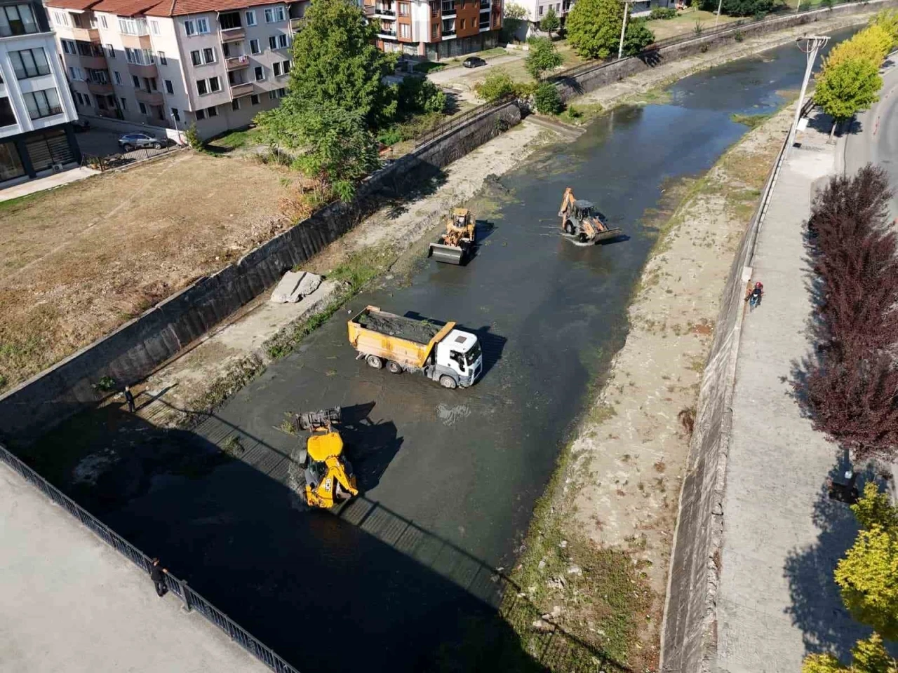 Yoğun sıcaklıklara maruz kalan Düzce’de dere yataklarında oluşabilecek koku ve yosun oluşumunun önüne geçmek için yürütülen çalışmaların kısa süre içerisinde tamamlanması planlanıyor.