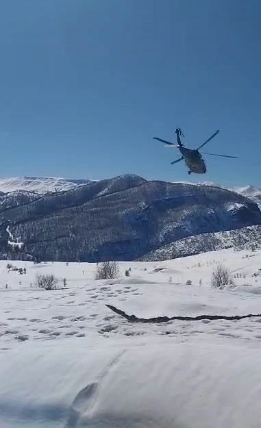 Tunceli’nin Hozat ilçesinde çetin kış şartları nedeni ile hayvanlarına yem getiremeyen çiftçinin yardımına askeri helikopter yetişti. Dağlık araziye inen helikopter, çiftçiye hayvanları için yem bıraktı.