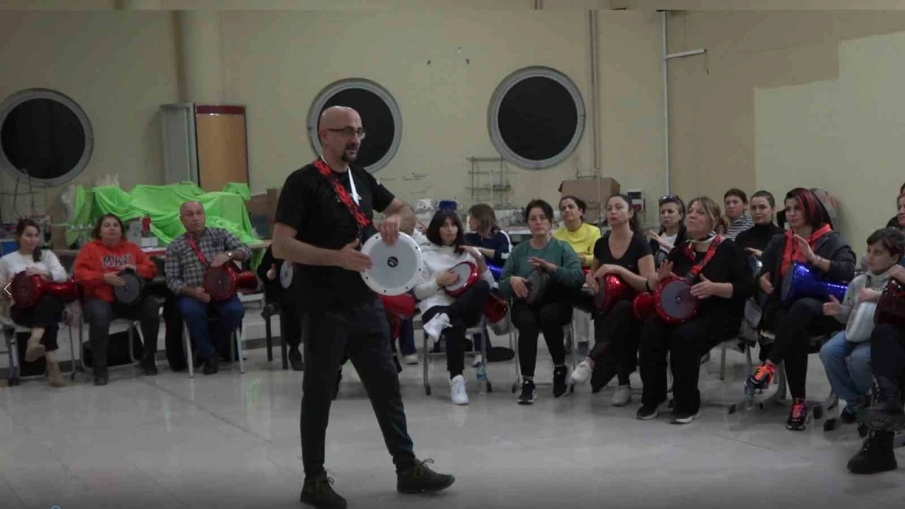 Samsun’un Atakum Belediyesi’nin başlattığı ritim atölyesine katılan vatandaşlar, hem darbuka çalmayı öğreniyorlar hem de stres atıyorlar.