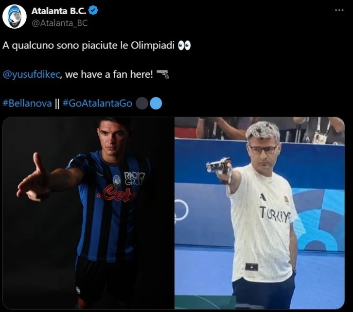 Söz konusu transferin resmi sosyal medya hesabından duyurulma şekli ise kısa sürede ilgi topladı. Atalanta’nın resmi hesabında Raoul Bellanova’nın Paris 2024 Olimpiyat Oyunları’nda gümüş madalya kazanan Yusuf Dikeç’in ikonik pozunu verdiği fotoğraf paylaşıldı.