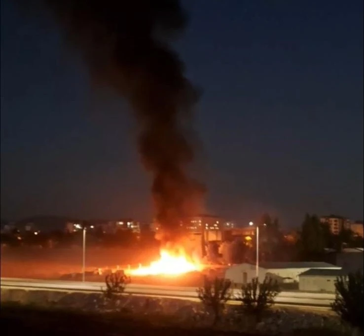 Adıyaman’da, bir işletmenin bahçesinde bulunan atık malzemelerin cayır cayır yanması korkuttu.