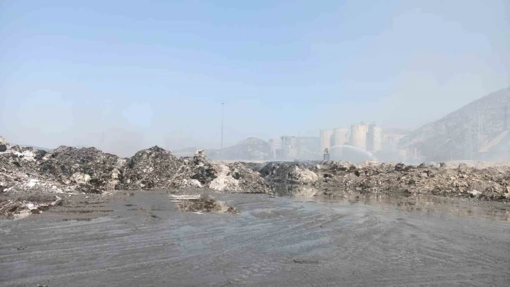 Soğutma çalışmaların devam ettiği Kipaş Kağıt Fabrikası, yangın sorası adeta kül dağına döndü.