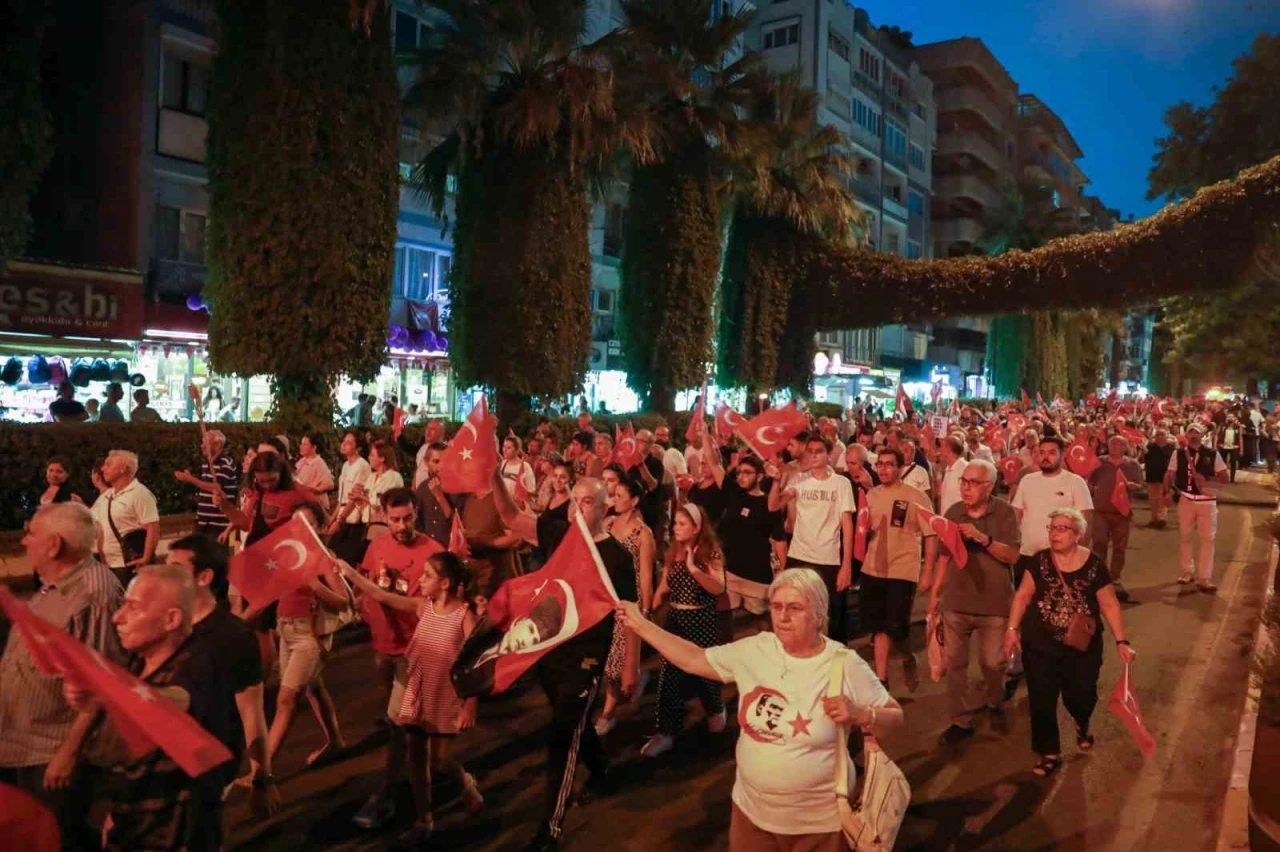 Aydın’ın düşman işgalinden kurtuluşunun 103’üncü yıl dönümü dolayısıyla düzenlenen Fener Alayı’na binlerce kişi katıldı. Büyük bir coşkuya sahne olan etkinlikte vatandaşlar geceyi fenerlerin ışıklarıyla gündüze çevirdi. Aydın’ın düşman işgalinden kurtuluşunun 103’üncü yıl dönümünde düzenlenen Fener Alayı’n vatandaşlar yoğun ilgi gösterdi. İstasyon Meydanı’nda başlayan yürüyüşe, binlerce vatandaş ellerinde Türk bayrakları ve meşalelerle katıldı. Yürüyüş, Adnan Menderes Bulvarı, Kıbrıs Caddesi, Kozdibi Meydanı ve Kütüphane Caddesi üzerinden devam ederek başlangıç noktası olan İstasyon Meydanı’nda sona erdi. Etkinlik boyunca şehrin cadde ve sokakları fenerlerin ışığıyla aydınlandı, marşlar ve sloganlar eşliğinde coşku doruğa ulaştı. Yürüyüş güzergâhında bulunan evlerin balkonlarına çıkan vatandaşlar da ellerinde bayraklarla korteje destek vererek etkinliğe ortak oldu.