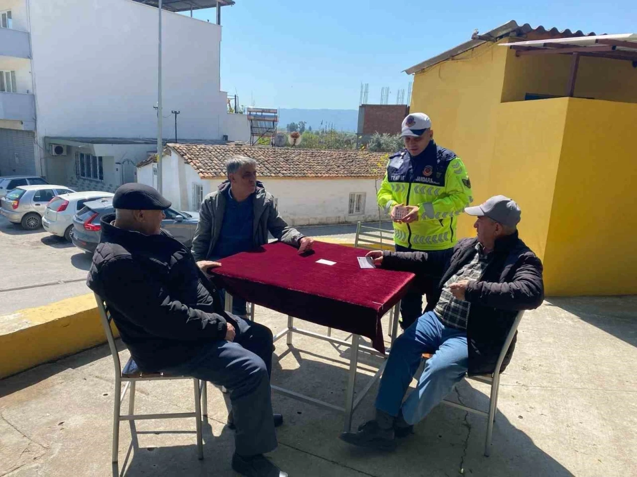 Aydın İl Jandarma Komutanlığı koordinesinde yürütülen güvenli trafik eğitimleri aralıksız sürüyor. Bu çerçevede saha çalışmalarına devam eden ekipler, Efeler ilçesi Kadıköy, Kardeşköy, Kuyucular ve Şevketiye mahallelerinde bulunan kahvehanelerdeki 135 vatandaşla bir araya geldi. Trafik Jandarması tarafından vatandaşlara motosiklet kullanımı ile ilgili kask takılmasının önemi, motosiklet sınıfına göre sürücü belgesi alınması, hız kuralları, yağışlı ve sisli havalarda dikkat edilmesi gereken hususlar hakkında bilgilendirme yapıldı ve broşür dağıtıldı. Trafik bilincinin oluşması hedefiyle yürütülen çalışmaların aralıksız süreceği öğrenildi.
