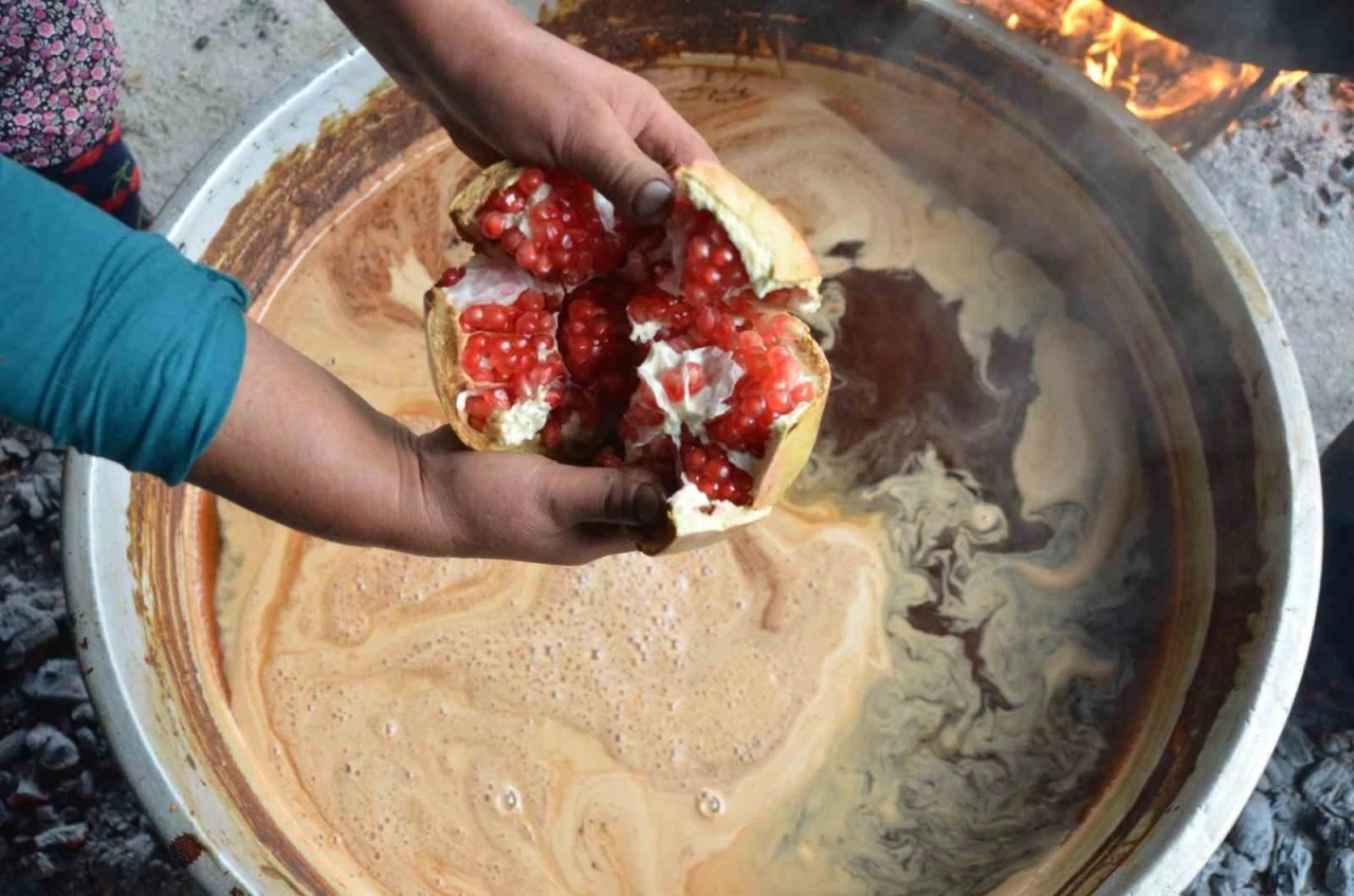 Aydın’ın Efeler ilçesi Dağeymiri Mahallesi’nde nar ekşisi üretimi, dededen kalma yöntemlerle sürdürülüyor. Vatandaşlardan Muharrem Ay ve ailesi, topladıkları narları tahta teknede ezip odun ateşinde kaynatarak geleneksel lezzeti yaşatıyor. Dağeymiri Mahallesi’nde nar ekşisi yapımında geleneksel yöntemler yaşatılmaya devam ediyor. Mahalle sakinlerinden Muharrem Ay, ailesiyle birlikte her yıl olduğu gibi bu yıl da hasat ettikleri narları eski usul ile ekşiye dönüştürüyor. Hasadın ardından tanelerine ayrılan narlar, tahta teknelere alınarak eziliyor. Elde edilen nar suyu, daha sonra odun ateşinde saatlerce kaynatılarak kıvamlı bir ekşiye dönüşüyor. Tamamen doğal yöntemlerle yapılan nar ekşisi, zahmetli yapım sürecinin ardından pazar tezgahlarında yerini almaya başlarken, vatandaşların da doğal ve ev yapımı nar ekşisine ilgisi yoğun oluyor.