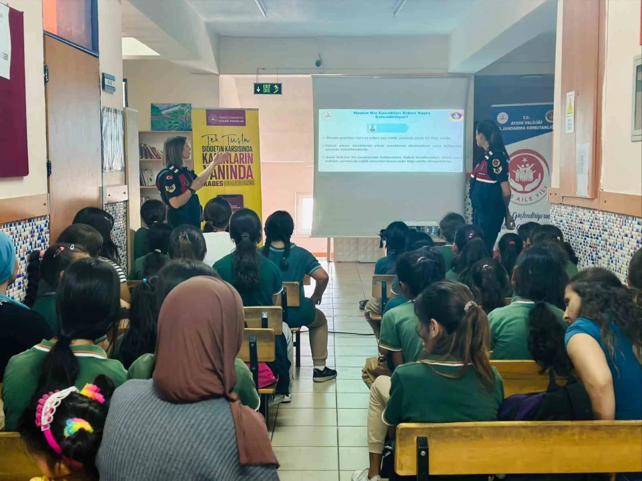 Aydın İl Jandarma Komutanlığı Aile İçi Şiddetle Mücadele ve Çocuk Kısım Amirliği ile Efeler İlçe Jandarma Komutanlığı ekipleri tarafından Efeler Yeniköy İlkokulu ve Ortaokulu’nda öğrenim gören öğrencilere yönelik bilgilendirme faaliyeti gerçekleştirildi. Aydın İl Jandarma Komutanlığı, 186. kuruluş yıldönümü etkinlikleri kapsamında çocuklara yönelik farkındalık çalışmalarını sürdürüyor. Aile İçi Şiddetle Mücadele ve Çocuk Kısım Amirliği ile Efeler İlçe Jandarma Komutanlığı ekipleri tarafından, Efeler ilçesi Yeniköy İlkokulu ve Ortaokulu’nda öğrenim gören öğrencilere yönelik bilgilendirme faaliyeti gerçekleştirildi. Etkinlikte öğrencilerin suça sürüklenmesinin ve suç mağduru olmalarının önlenmesi amacıyla; erken yaşta ve zorla evlilikler, çocuk ihmali ve istismarı ve aile içi şiddet konularında eğitim verildi. Ayrıca öğrencilerin bu tür durumlarla karşılaşmaları halinde hangi yollarla başvuru yapabilecekleri de anlatıldı. Jandarma ekipleri, "Geleceğimiz olan öğrencilere yönelik bilgilendirme faaliyetlerimiz devam edecektir" mesajıyla eğitimin süreceğini vurguladı.
