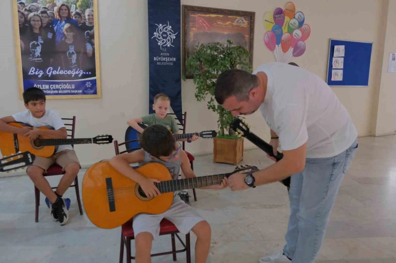 Aydın Büyükşehir Belediyesi’nin yaz kursları kapsamında düzenlediği gitar eğitimleri, müziğe ilgi duyan çocuklara ve gençlere sanatsal gelişimlerini destekleyen keyifli bir ortam sunuyor. Klasikten moderne geniş bir yelpazede ilerleyen eğitimlerde Aydınlı minikler, gitarın temel tekniklerini öğrenmenin yanı sıra müziğin evrensel diliyle tanışıyor. Ücretsiz olarak sunulan kurslarda çocuklar notalarla ilk tanışmalarını yaparken, birlikte çalma ve üretme kültürünü de deneyimliyor. Derslerde öğrenilen parçalar, genç yeteneklerin özgüvenini artırırken, sanatla kurdukları bağın güçlenmesini sağlıyor. Sanatın çocukların gelişiminde önemli bir rol oynadığını vurgulayan Aydın Büyükşehir Belediye Başkanı Özlem Çerçioğlu, "Yaz kurslarımızla çocuklarımızın hem yeni beceriler edinmesini hem de yaz tatillerini verimli geçirmesini sağlıyoruz. Gitar kurslarımız da çocuklarımızın dünyaya başka bir pencereden bakmalarına katkı sunuyor. Aydın’da sanata erişim bir ayrıcalık değil, her çocuğun hakkıdır" dedi. Veliler ise yaz kurslarının çocukları için hem eğitici hem de güvenli bir ortam sunduğunu belirterek Aydın Büyükşehir Belediyesi’ne ve Başkan Çerçioğlu’na teşekkür etti.